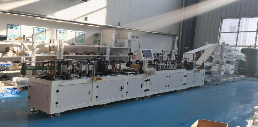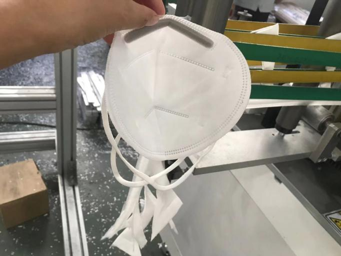 This machine is mainly used for the automatic forming of fully automatic N95/FFP2/FFP3masks,through coil material feeding, automatic transportation,synchronization of nosebridge and coil material, welding forming,earband welding,folding,ultrasonic welding and sealing,cutting and forming.